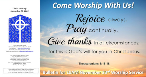 The Worship service begins at 10am. The Live Stream will begin at 9:50am.