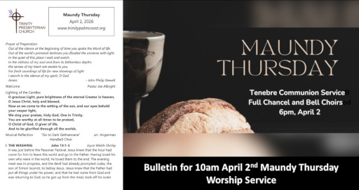 For a preview of the service, read the Maundy Thursday bulletin. We hope you can join us in-person or on-line!